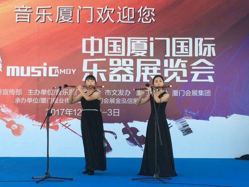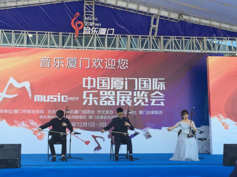 近日,在厦门国际会展中心集美大学古厝民乐团24名成员携12个器乐类节目参加了2017年中国厦门国际乐器展览会。该展览会是由厦门市委宣传部指导,音乐厦门组委会、厦门市文发办、厦门日报社、厦门会展集团联合主办,厦门市音乐家协会、鼓浪屿钢琴艺术馆鼎力协办,厦门报业传媒集团、厦门会展金泓信展览有限公司共同承办。厦门日报社充分发挥资深媒体优势,精心打造此次乐器领域的全新力作;首次实现了主流传媒和专业展览公司的跨界合作,为广大音乐行业人士打造一个集乐器展示、音乐交流为一体的高品质平台。古厝民乐团以精彩的乐器演奏让观众们掌声连连,好评不断,不仅拓展了集美大学古厝民乐团的知名度,更是为厦门音乐艺术再做贡献!